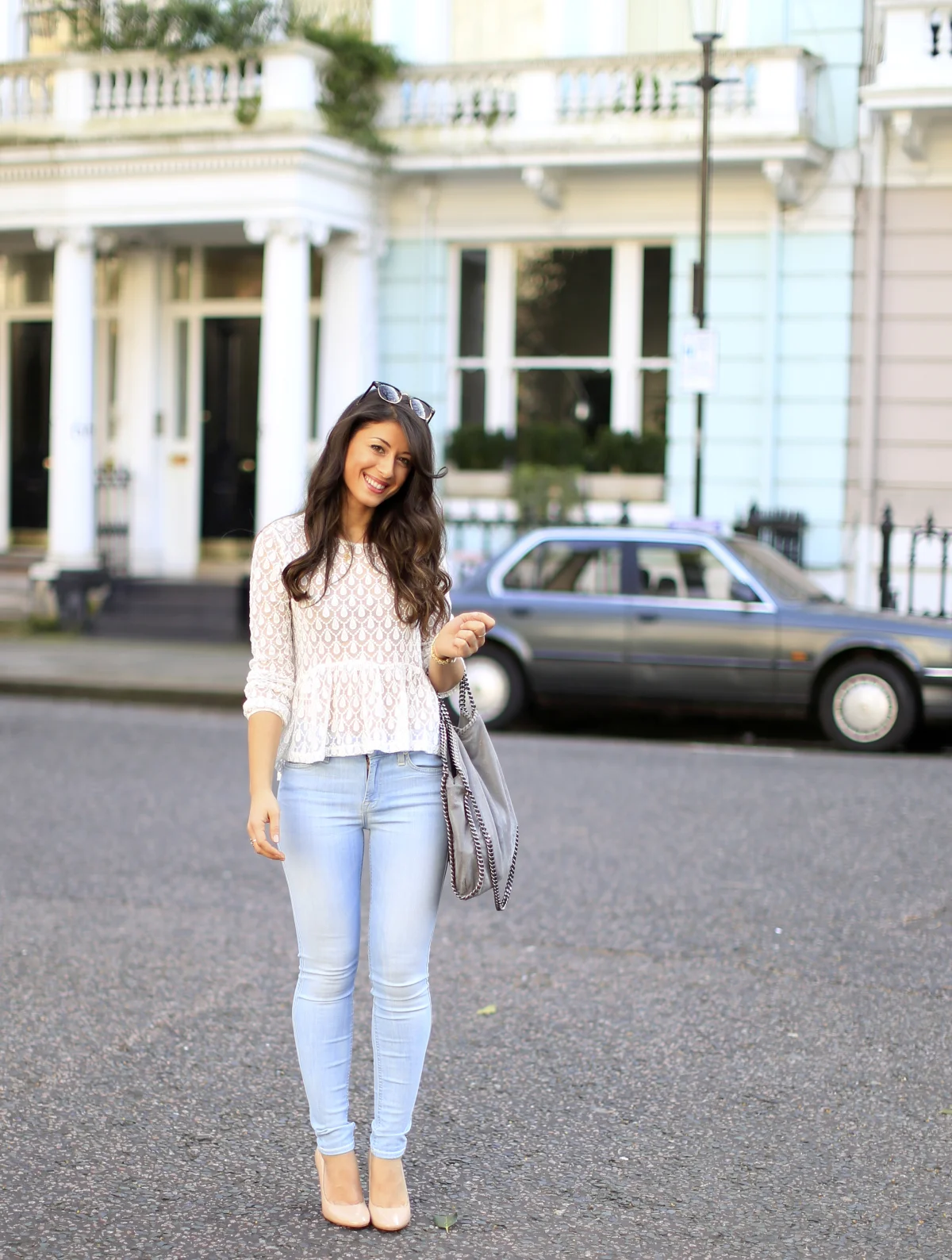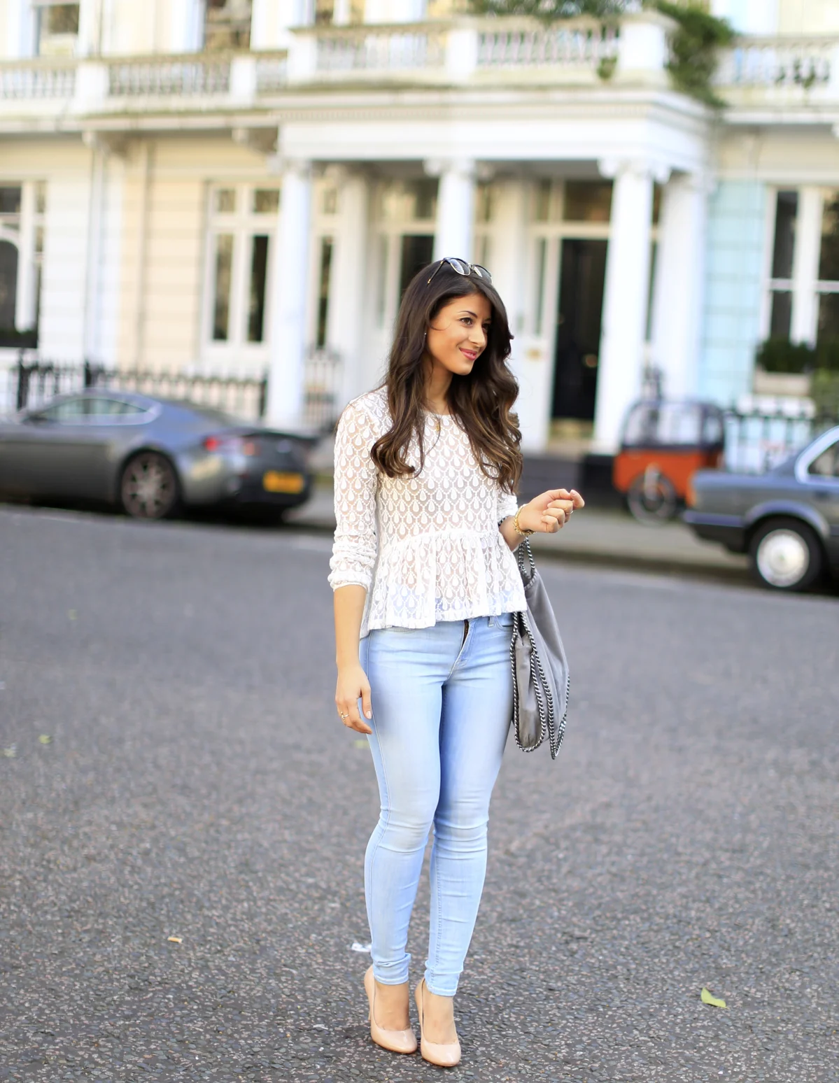 Heels- ( Steve Madden) , Jeans- ( 7 For All Mankind), Top- ( H&M), Trench Coat ( Burberry), Bag ( Stella McCartney), Watch - ( Michael Kors) , Sunglasses- ( Rayban), Ring- Mejuri
